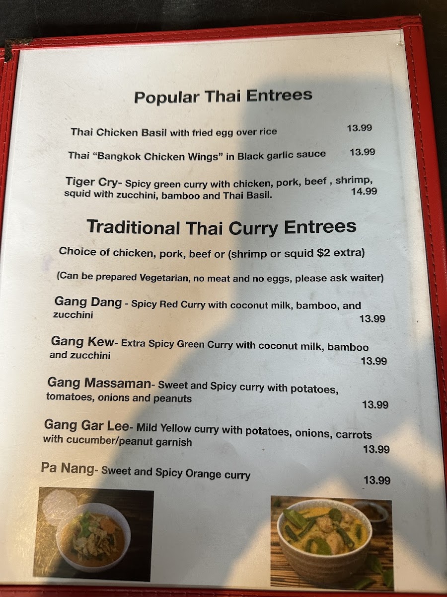 Visitors can enjoy popular options such as Pad Thai Chicken or the Pad Zee Eew stir-fried noodles, alongside specialties like Tom Yum Soup, which carries a bright, refreshing tang perfect for cooler evenings or as a light starter. For those seeking plant-based choices, dishes like Curry Tofu or Edamame offer both warmth and nourishment. The atmosphere of the restaurant lends itself well to casual gatherings, with outdoor seating providing a relaxed space to enjoy flavorful meals that feel homemade but thoughtfully prepared.